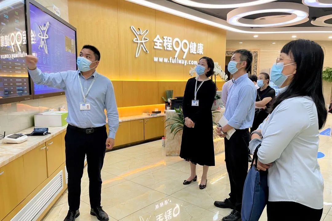 與會人員實地參觀了全程玖玖健康門診部、互聯網醫院及智慧養老平臺,包括健康管理中心、運營監控中心、智慧養老體驗中心等功能區域和配套設施,并聽取了全程玖玖健康探索居家智慧養老服務模式,互聯網+醫養結合數字化轉型方面取得的運營成效。